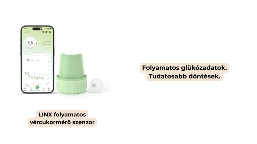 A LINX CGM szenzor lehetővé teszi, hogy a felhasználó valós időben kövesse a glükózszint változásait anélkül, hogy napi többszöri ujjbegyszúrásra lenne szükség. A folyamatos adatgyűjtés segít felismerni azokat a mintázatokat, amelyek a hagyományos méréseknél rejtve maradhatnak.
