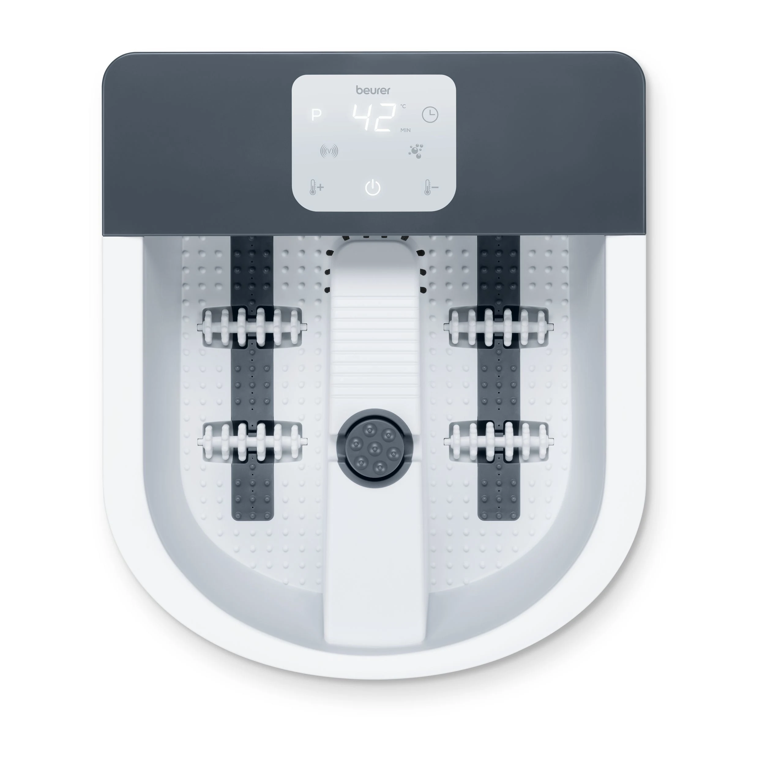A FB 60 láb-pezsgőfürdő a legfejlettebb otthoni wellness élményt kínálja. A nagy teljesítményű, 8 fokozatban állítható vízfűtés (34–48 °C), a vibrációs és pezsgőmasszázs, valamint a Premium Touch Display modern kényelmet és luxust nyújt. A három előre beállított masszázsprogram és a cserélhető pedikűr feltétek gondoskodnak a lábak teljes felfrissítéséről.