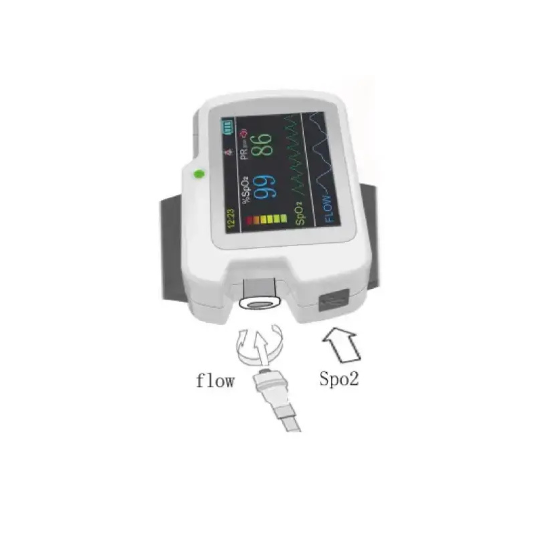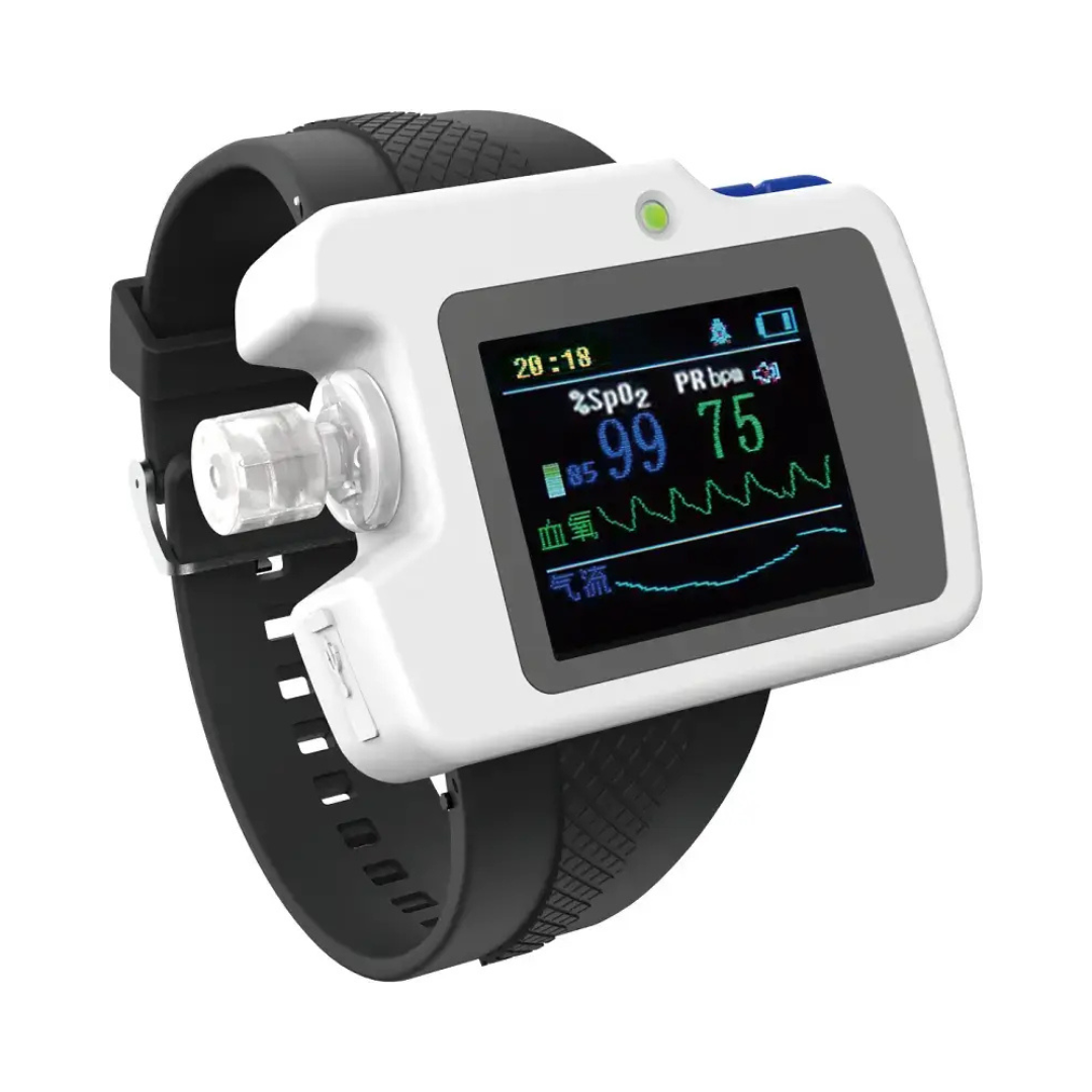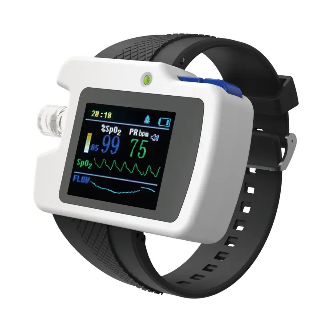 - Funkciók: légzés, SpO₂ és pulzusszám monitorozás