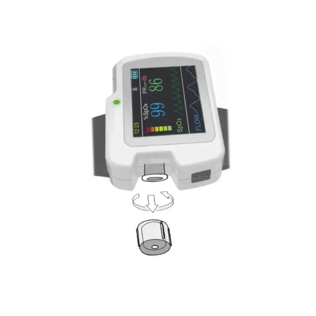 A készülék kijelzi az SpO₂ értékeket, a pulzusszámot, valamint a pulzushullámot és az orron keresztüli kilégzés hullámformáit. A mért adatok alapján kiszámítja az AHI indexet, amely fontos mutató az alvási apnoe felismerésében.