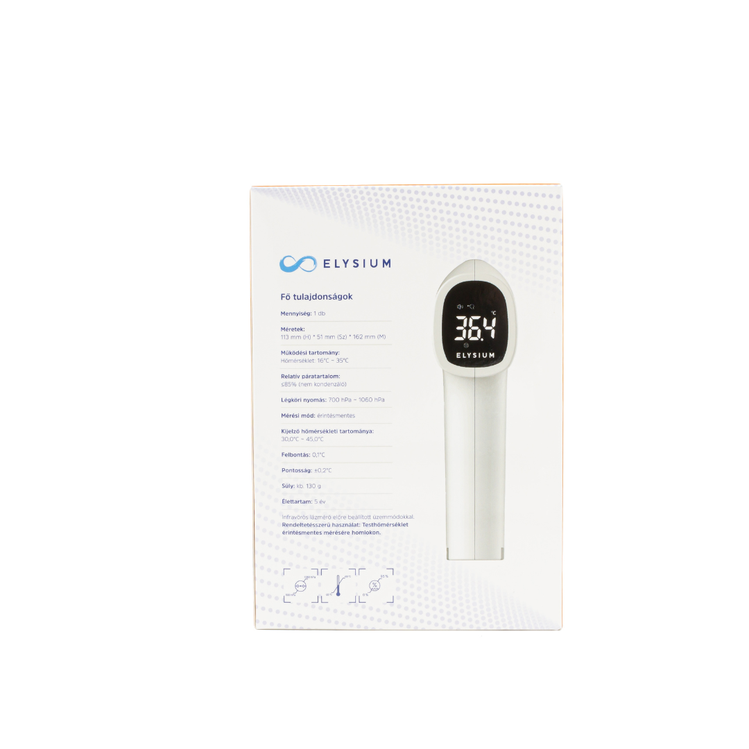 Az Elysium TP500 PRO magyarul beszélő érintésmentes infravörös digitális lázmérő beszélő funkciójának köszönhetően idősek vagy gyengén látók számára is ideális választás lehet, hiszen a mért eredményt magyar nyelven fel is olvassa. A készülék 2-féle mérési móddal is rendelkezik, a testhőmérséklet mellett felületi hőmérséklet is mérhető.