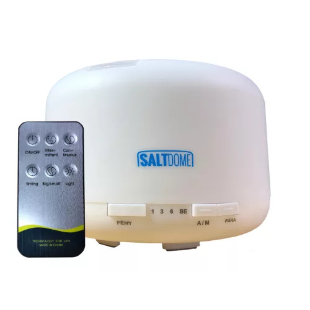 A SaltDome sóterápiás készülék innovatív megoldást kínál azoknak, akik otthon szeretnék élvezni a sóterápia előnyeit – például allergia, nátha, COPD vagy asztma esetén. A készülék ultrahangos technológiával működik: a tartályba kevert sóoldatot finom permetté alakítja, amelyet a beépített ventilátor juttat a levegőbe. Így kialakul a sóbarlangokra jellemző légkör, mely minden korosztály számára biztonságos és kíméletes – még éjszakai használatra is ideális.