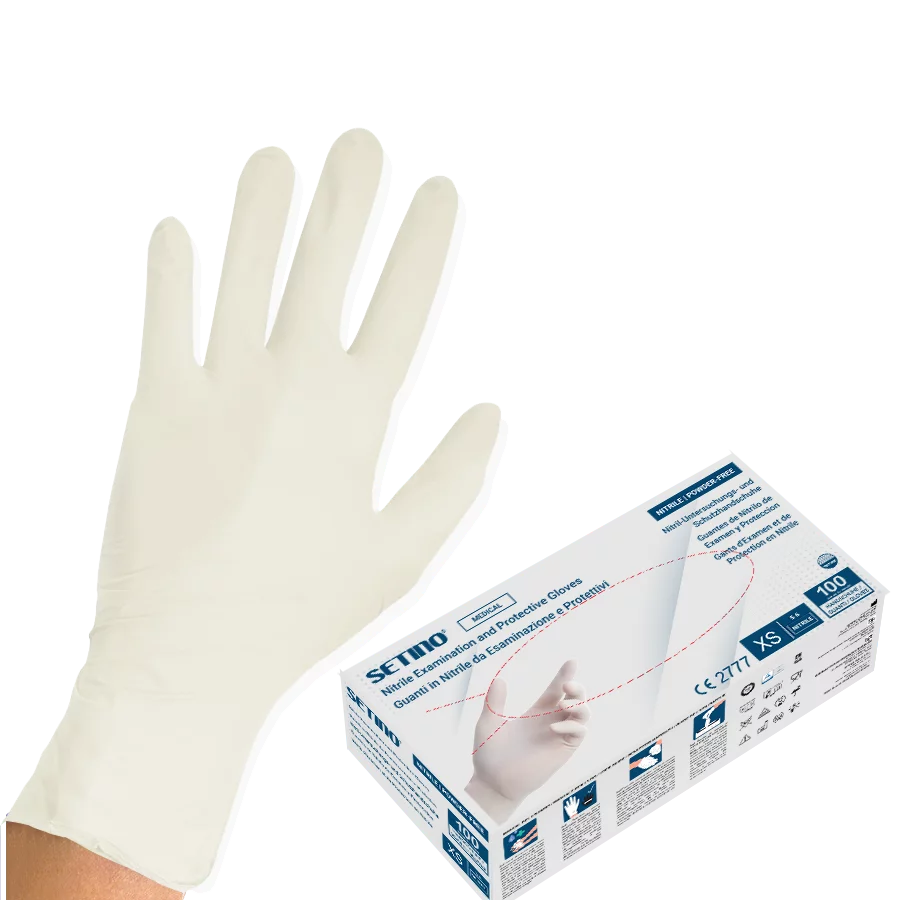 SETINO Nitril vizsgálókesztyű 3,5 g (púdermentes, fehér)
