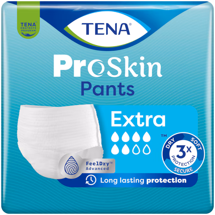 A TENA Pants Extra olyan, inkontinencia esetére készült pelenkanadrág, amely akár 100%-os védelmet biztosít közepes és súlyos vizeletszivárgás esetén, 2-szer gyorsabban szívja be a folyadékot*, és nappal, illetve éjszakára is hosszan tartó száraz érzést biztosít. Megbízható minőségű eldobható nadrágpelenka aktív életet élőknek, napi használatra, nemtől függetlenül.